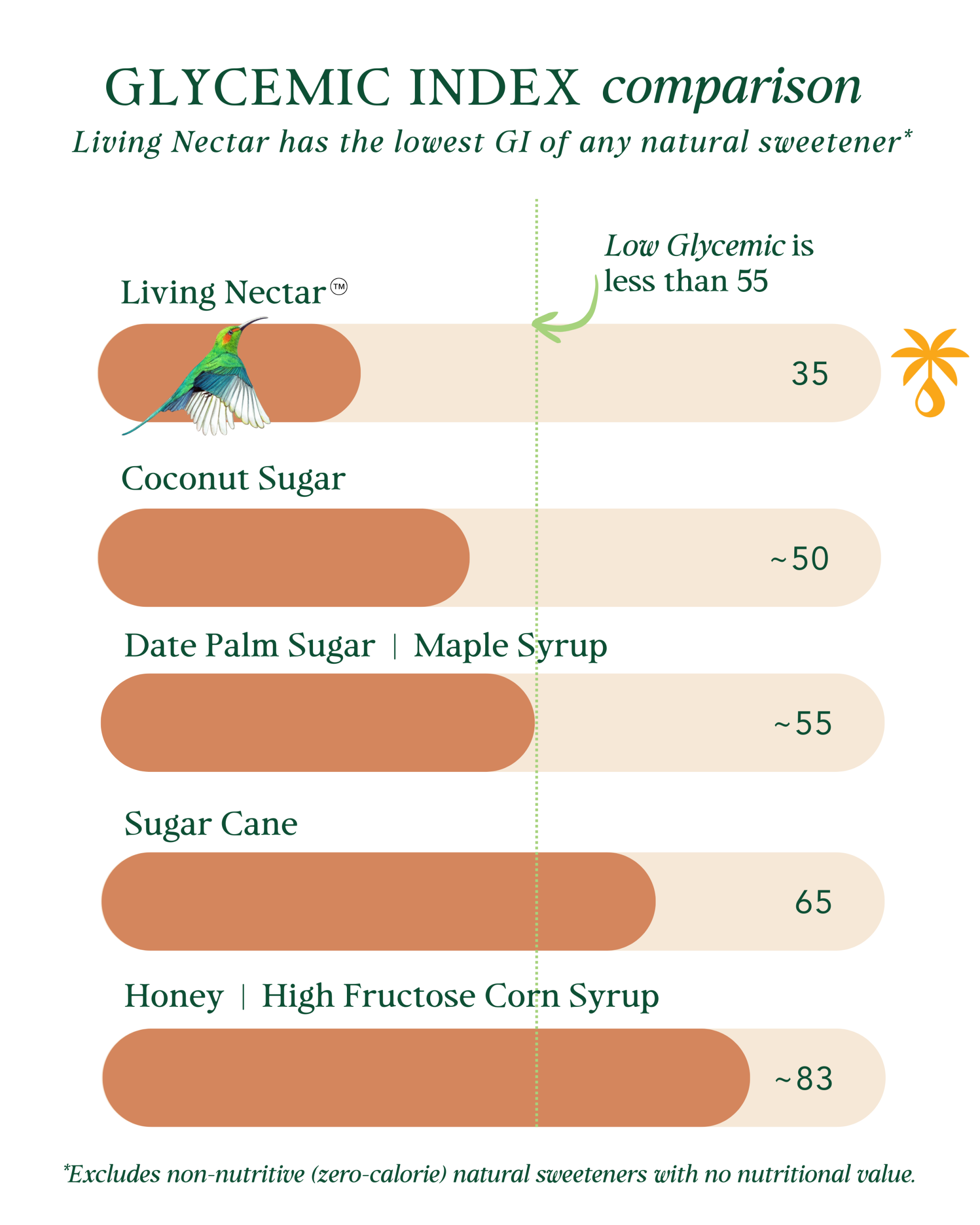 Unlike refined sugar, artificial sweeteners, or even some natural alternatives, Living Nectar™ is unrefined and minimally processed, preserving its full spectrum of nutrients. Compared to coconut sugar, honey, or maple syrup, it offers lower fructose, higher glucose, and a gentler glycemic impact, thanks to the nutrient cofactors—meaning less stress on your blood sugar levels, and more energy to fuel your day.